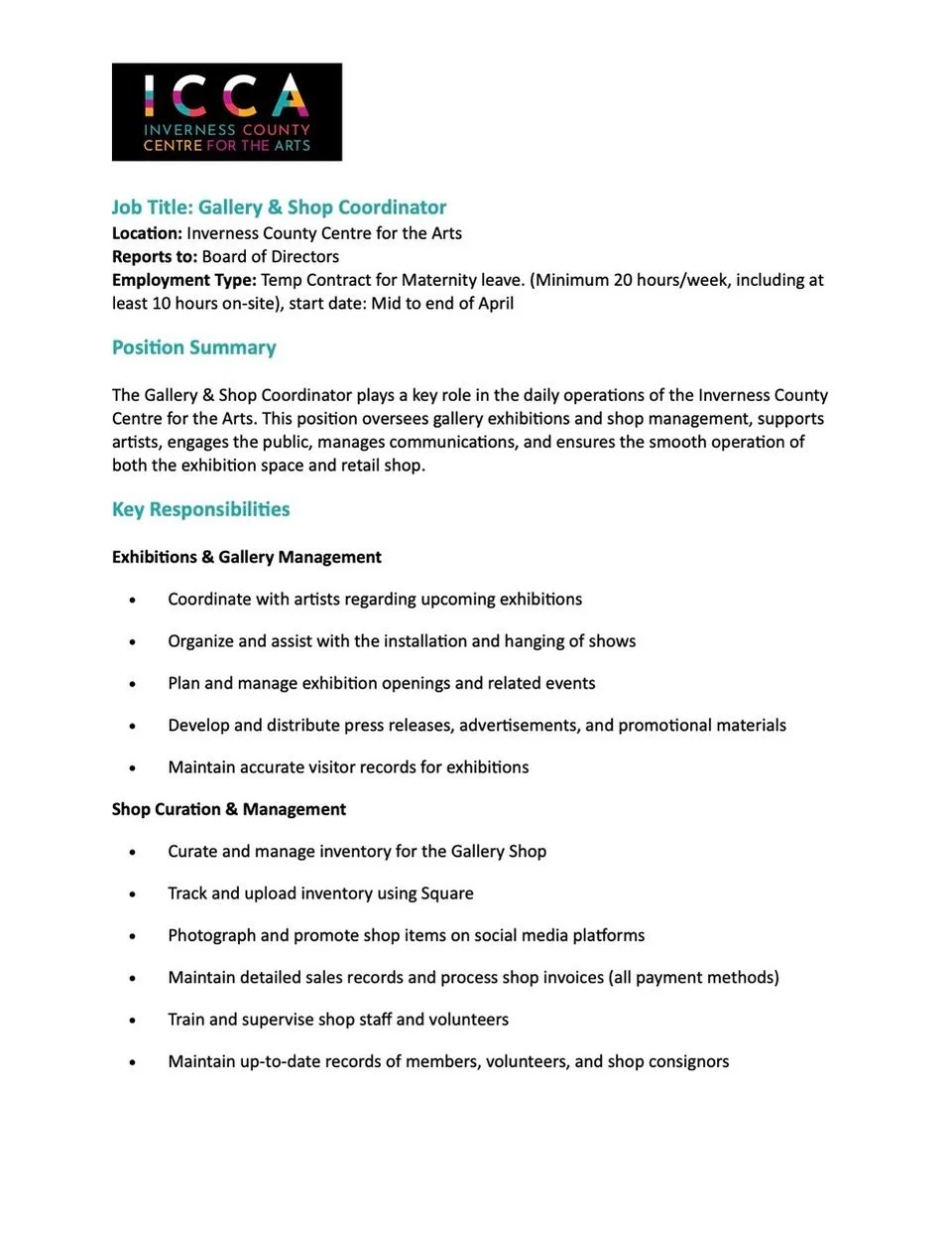 gallery & shop coordinator