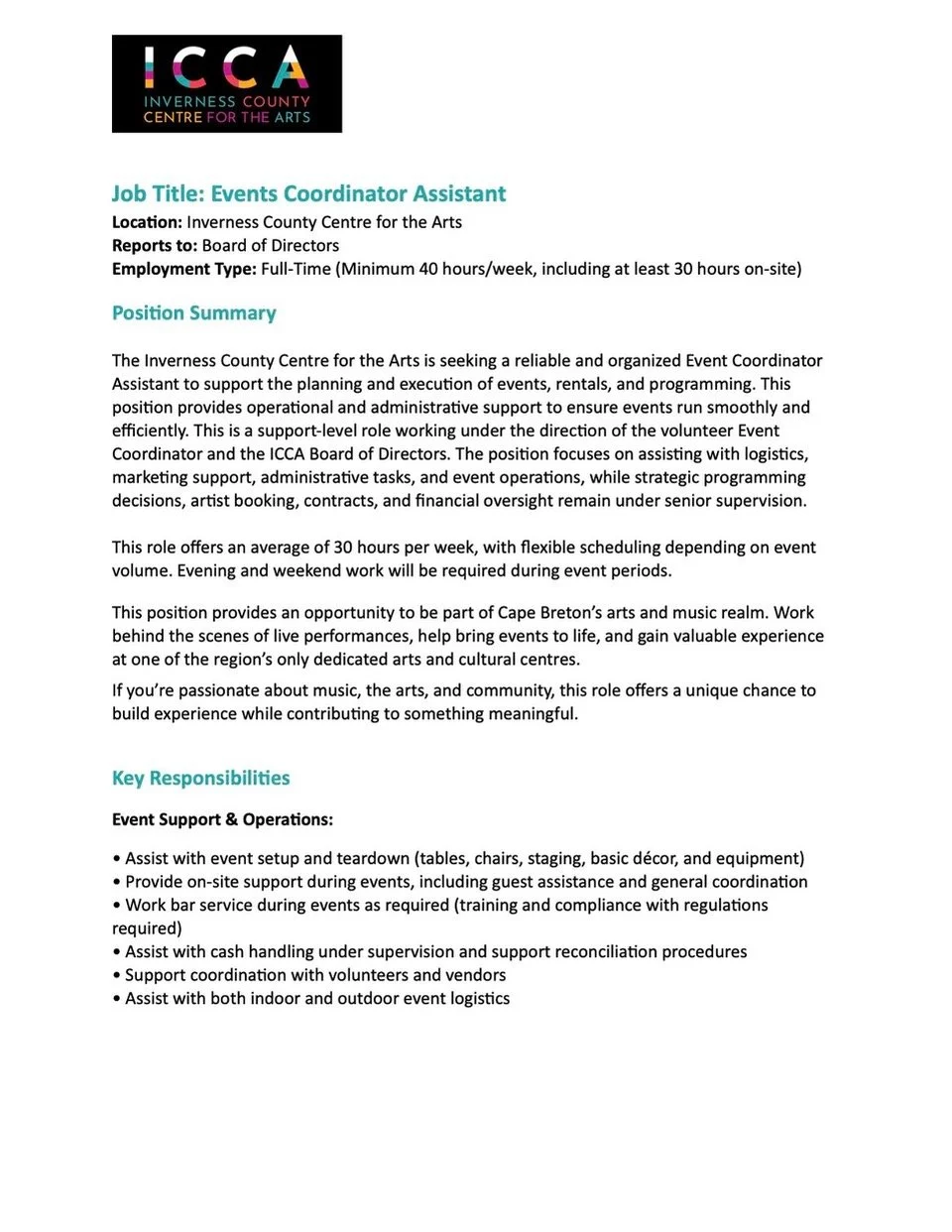 Events coordinator assistant